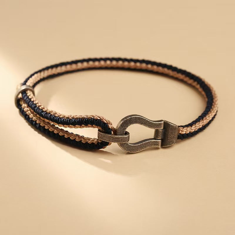925 Sterling Silver Couple's Vintage Horseshoe Hand Woven Bracelet