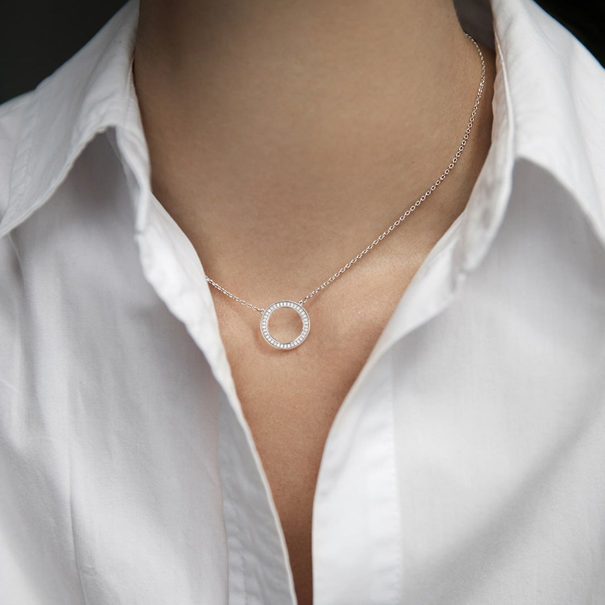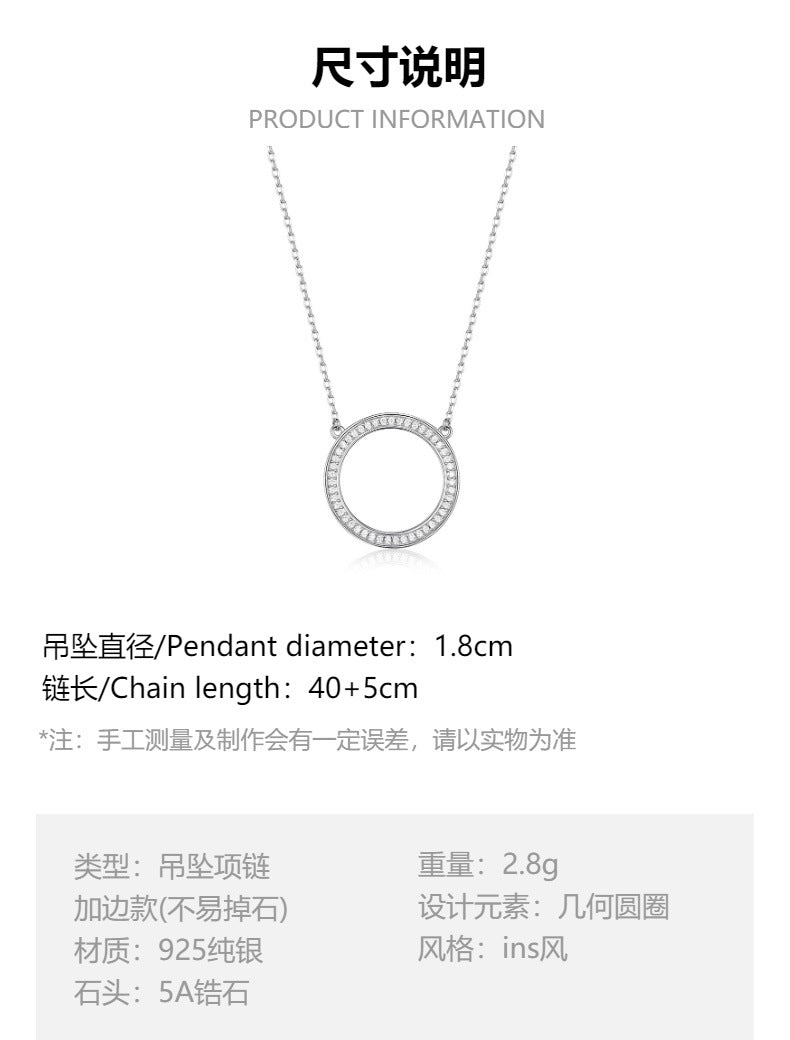 Zircon Circle Necklace Set - 925 Silver Geometric Layered Jewelry