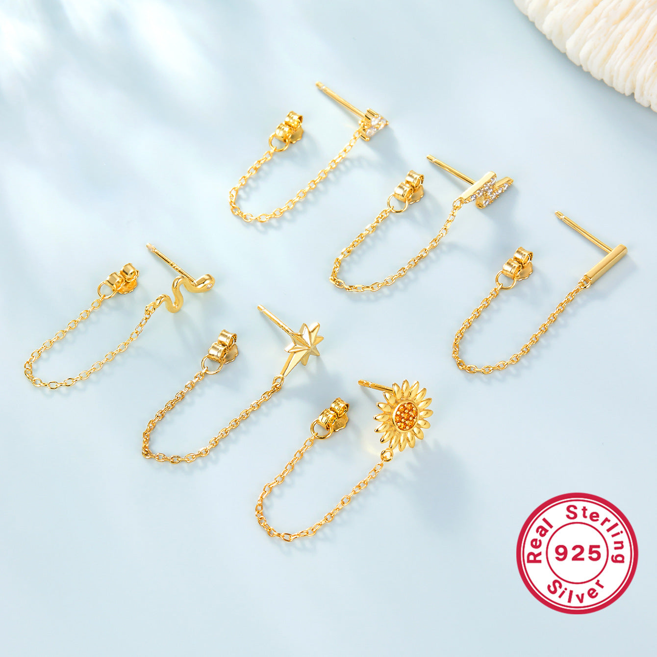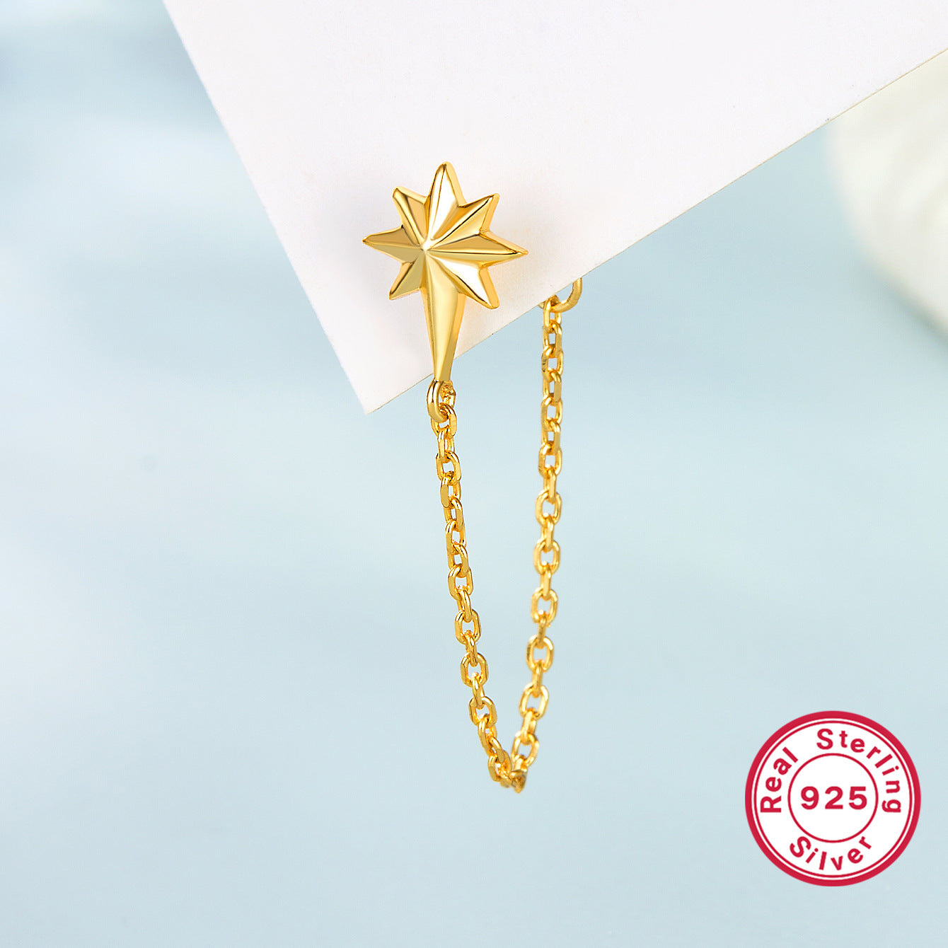 Octagram Snake Earring - 925 Silver Single Chain Geometric Jewelry