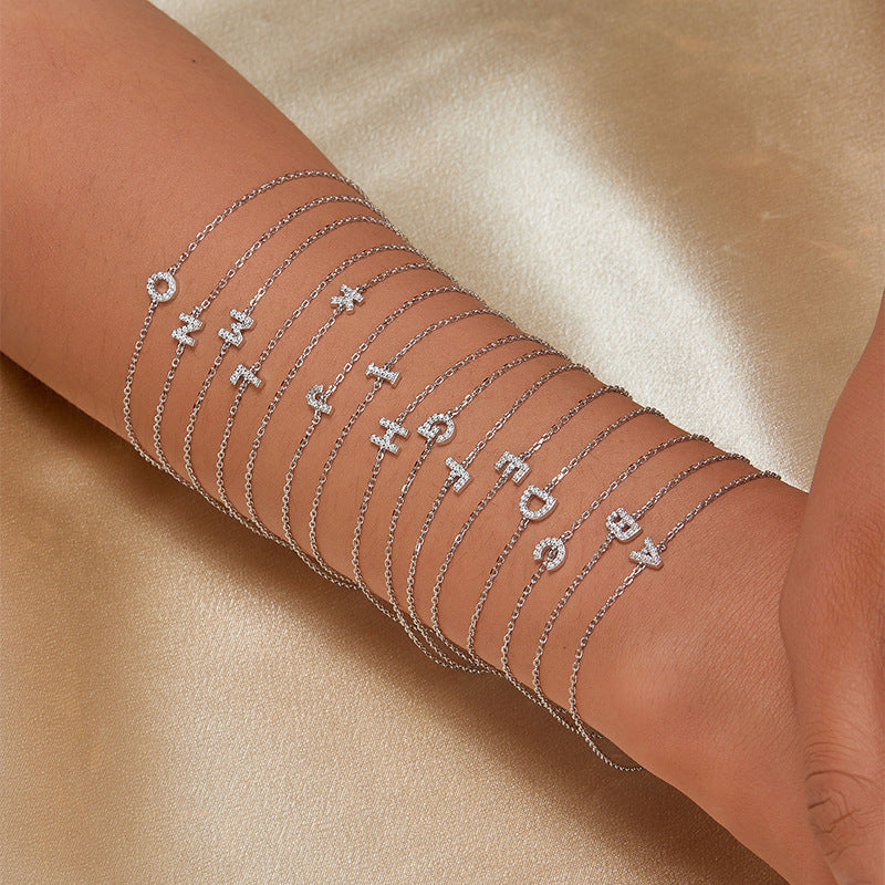 Alphabet Zircon Bracelet - 925 Silver Light Luxury Niche Jewelry