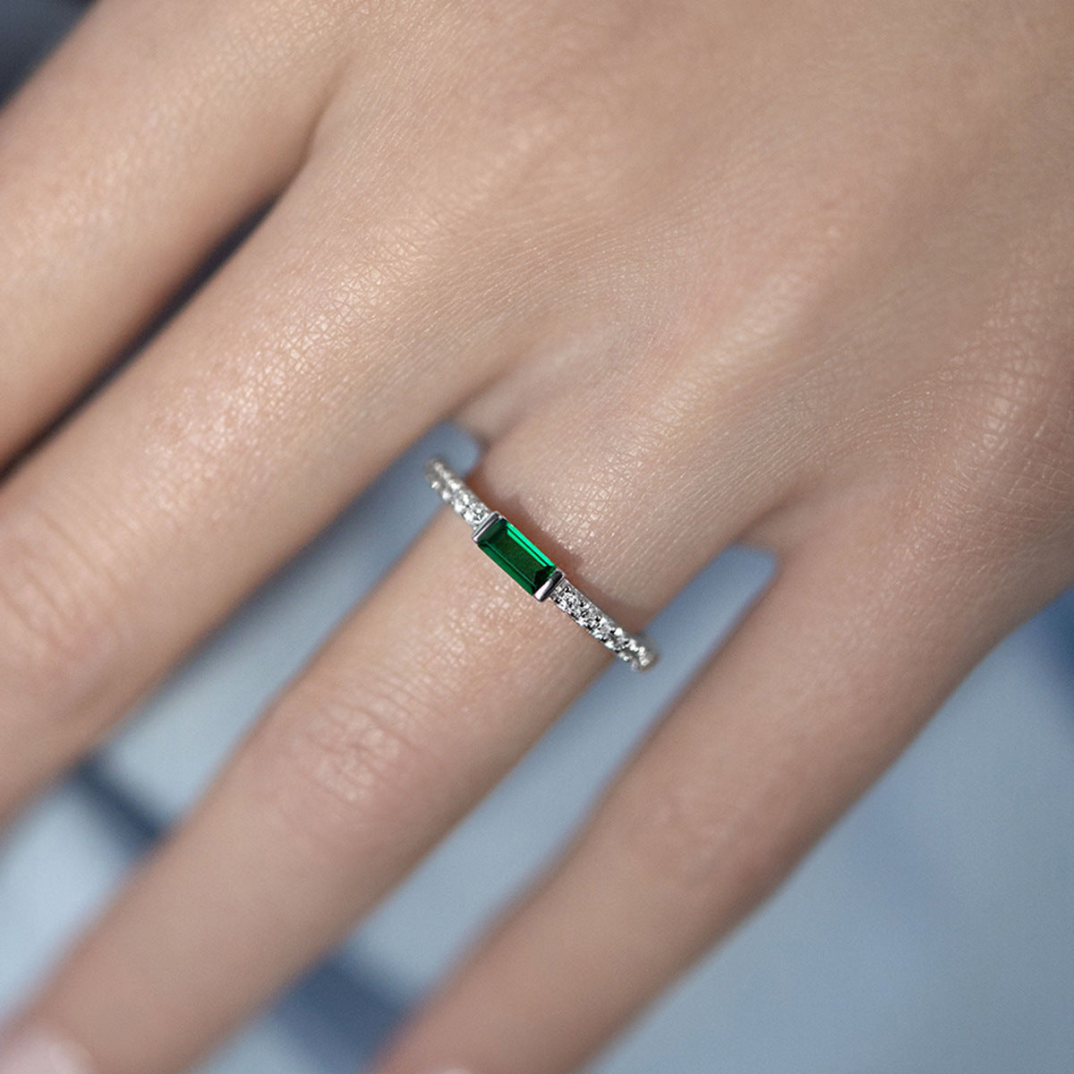 Green Nano Diamond Ring - 925 Silver Minimalist Light Luxury Jewelry