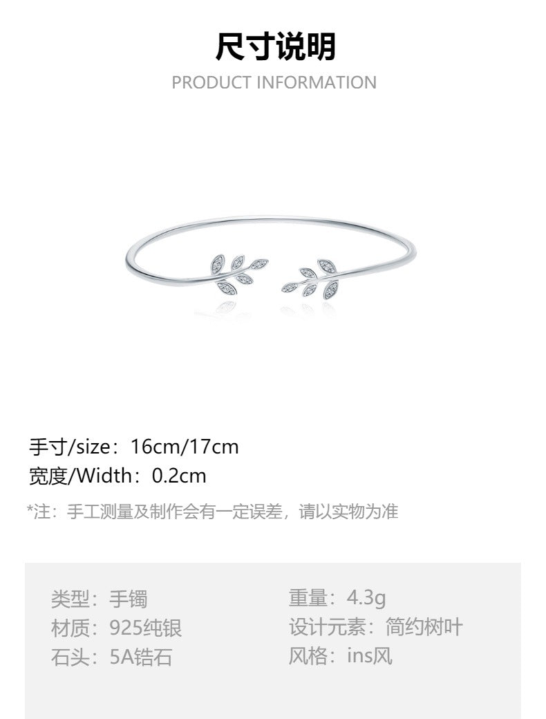 | Basic Info | Product Type | Women's Ins Style Unique Trendy 925 Silver Seiko Diamond-Inlaid Leaf Bangle (Bracelet) |