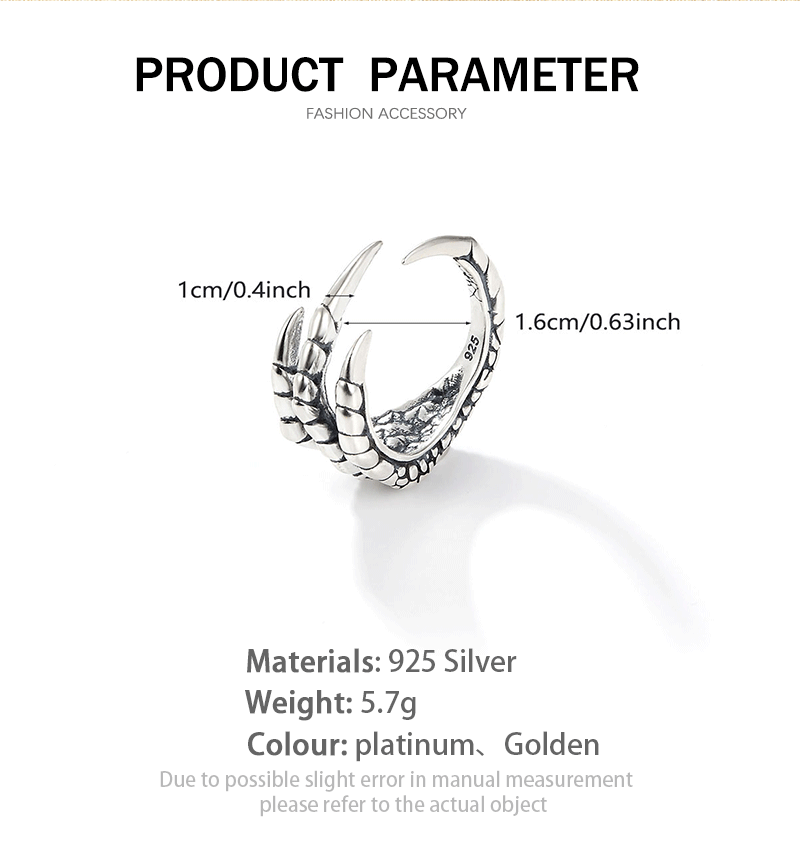 Dragon Claw Adjustable Ring - 925 Silver Halloween Niche Retro