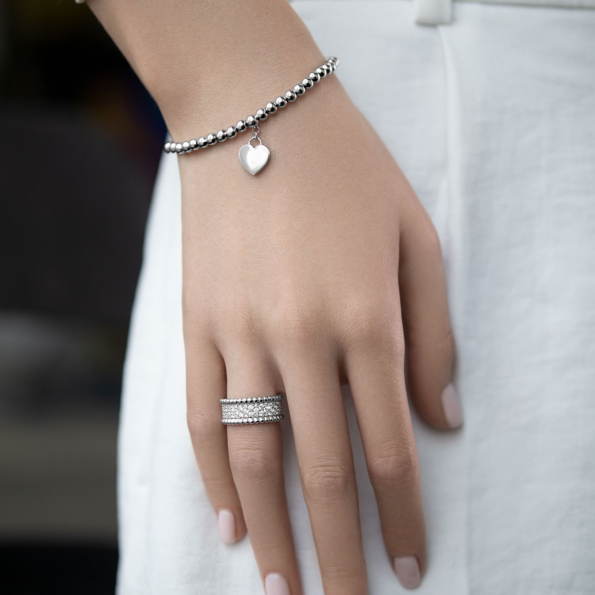 Heart Beaded Bracelet - 925 Silver Detailed Pendant Chain Wholesale