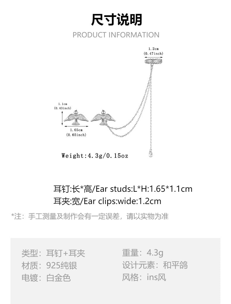 925 sterling silver peace dove necklace bracelet earrings dove set