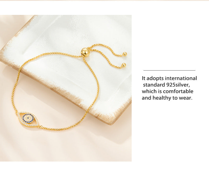 925 sterling silver bracelet evil eye inlaid zircon bracelet stretch beads