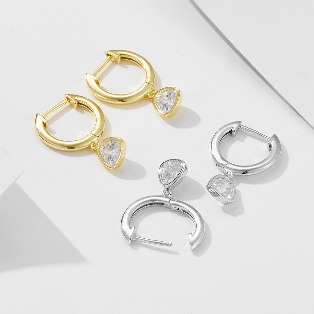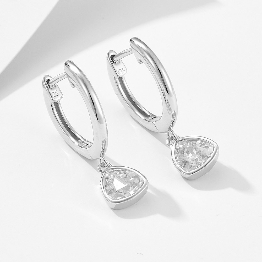 925 Sterling Silver Triangle Geometric Earrings for Women, Minimalist Zircon Dangle Earrings, Unique Aesthetic Jewelry, Versatile Daily Accessory