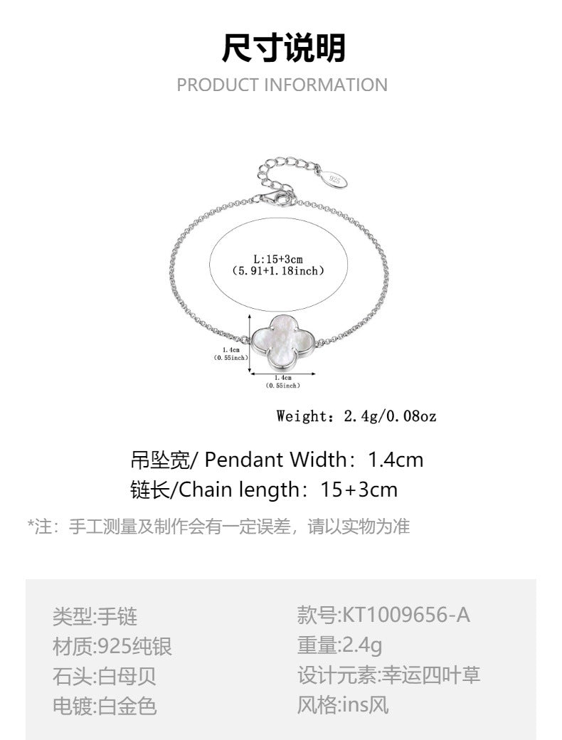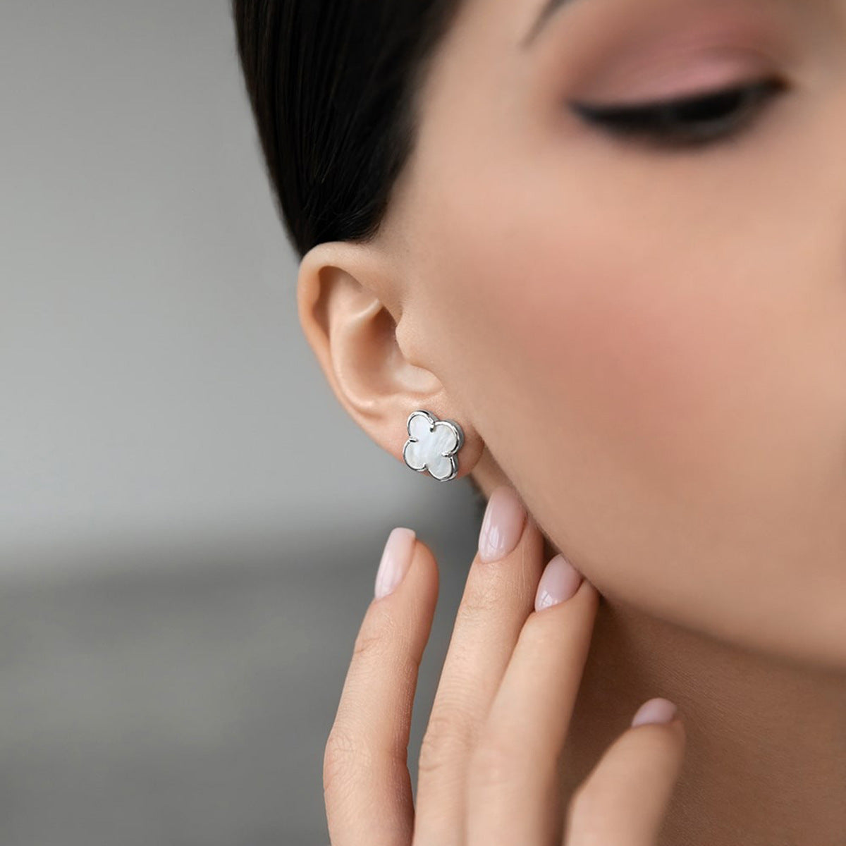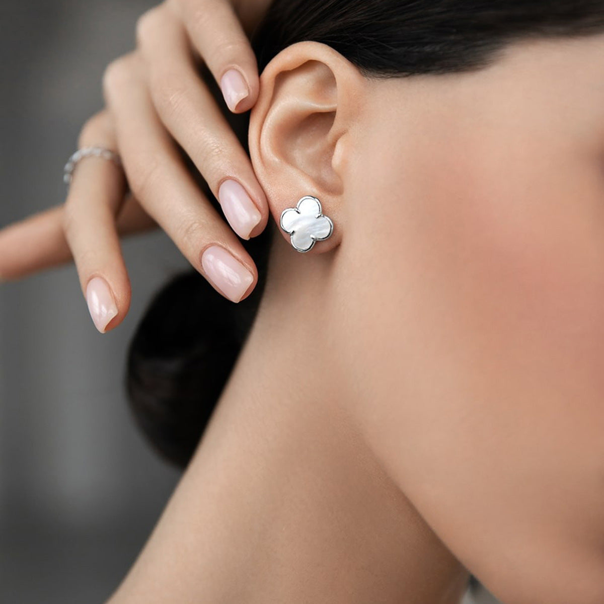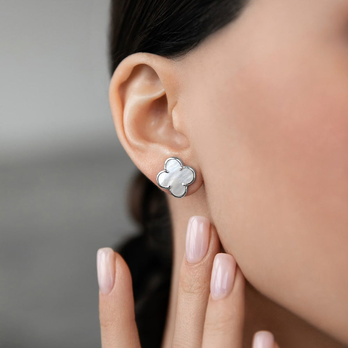 925 sterling silver four-leaf clover inlaid with white mother-of-pearl set