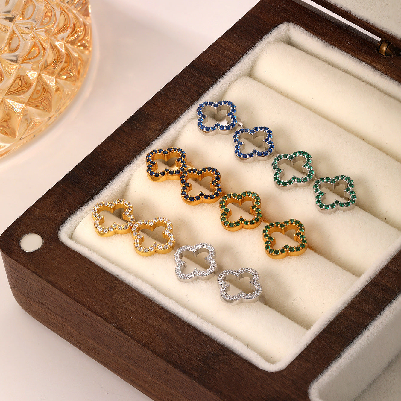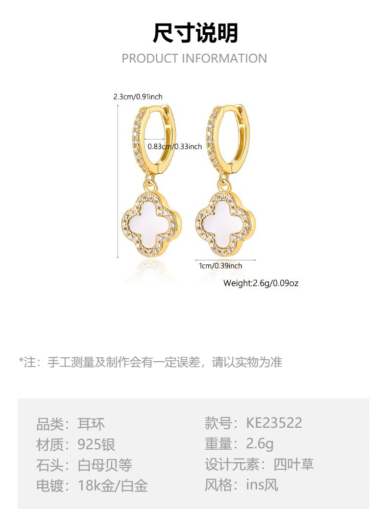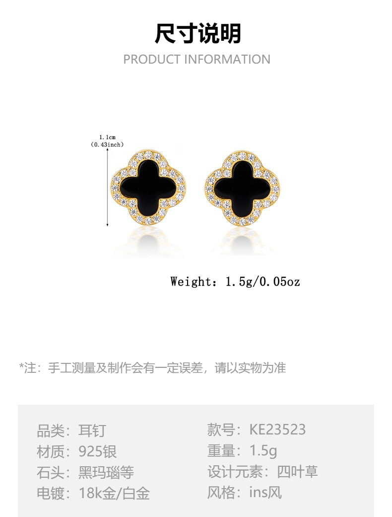 | 主要特点 | 主要卖点 | S925纯银首饰(支持鉴定),低过敏性,抗氧化,天然宝石镶嵌(贝壳/四叶草),十字链设计,百搭时尚通勤风格,多种款式(耳夹/耳钉/项链)和宝石选择,镀金/镀白金 |