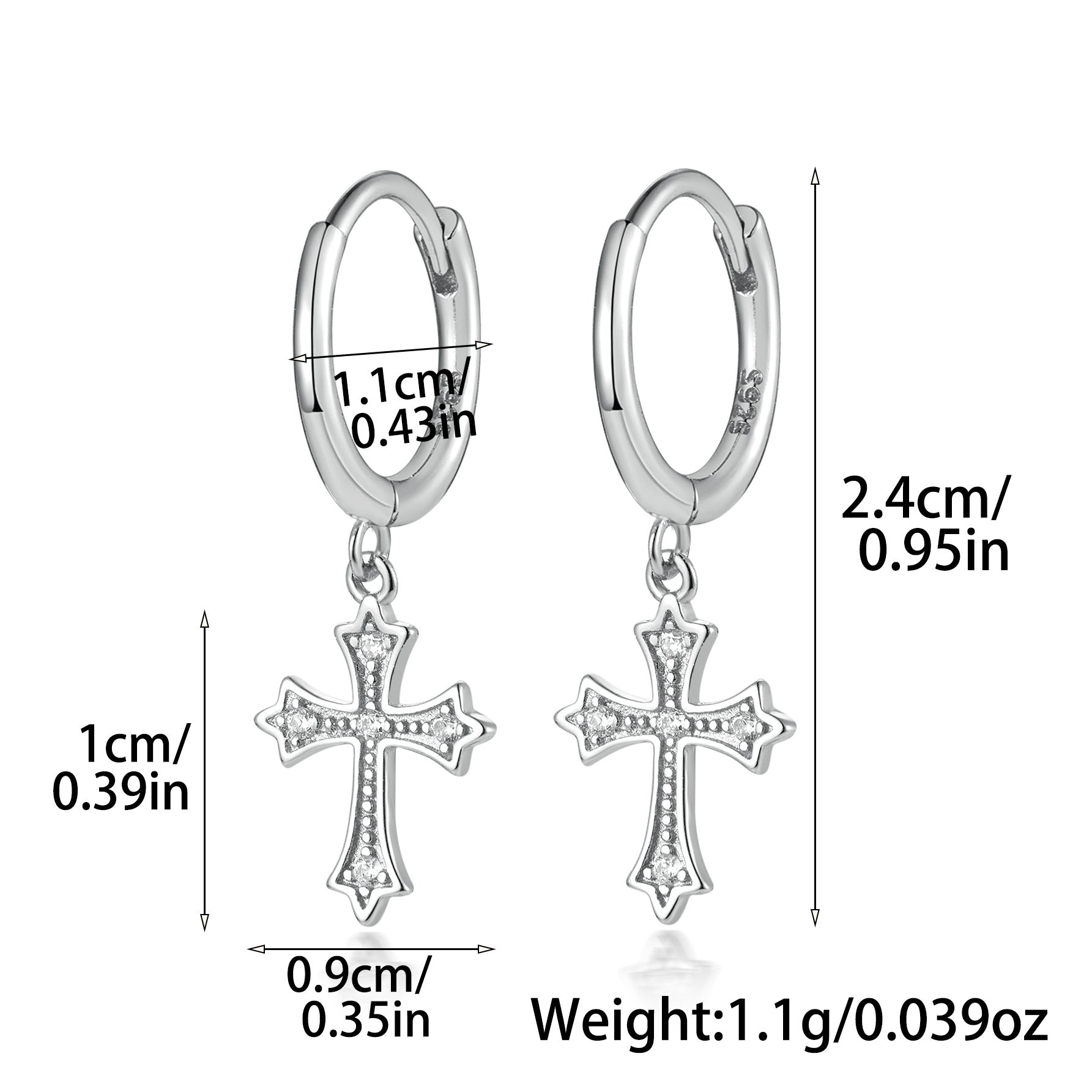 Micro-Inlaid Cross Earrings - S925 Sterling Silver Fashion Personalized Jewelry