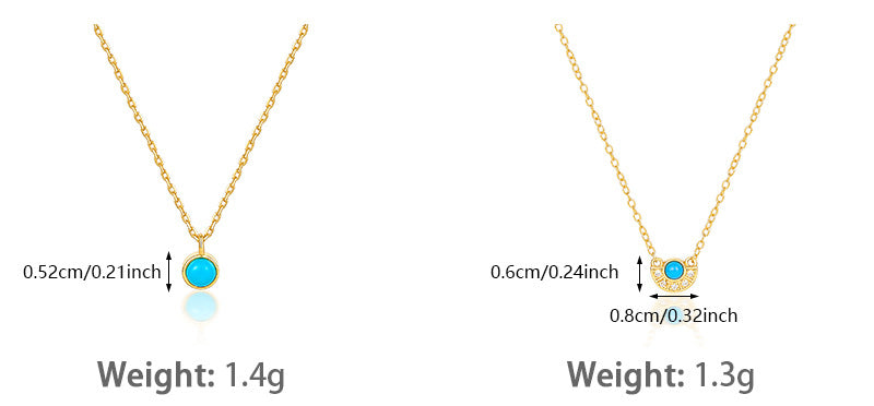 Turquoise Necklace - 925 Sterling Silver Retro Niche Collarbone Chain