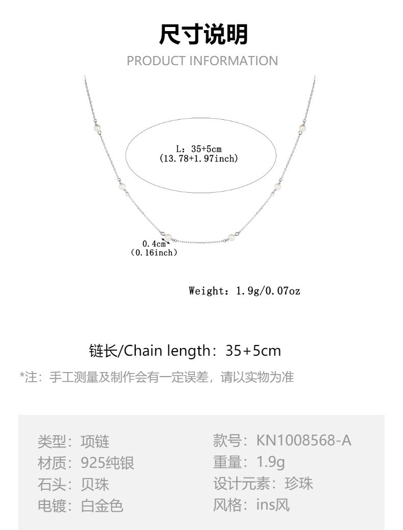 | Product Care & Service | Customization Service | For personalized needs (e.g., plating color, pearl size/shape, chain length, cross chain thickness), feel free to consult custom solutions. We craft high-quality S925 silver pearl necklaces with European luxury and Ins niche elements, perfect for office wear and elevated daily styling. |