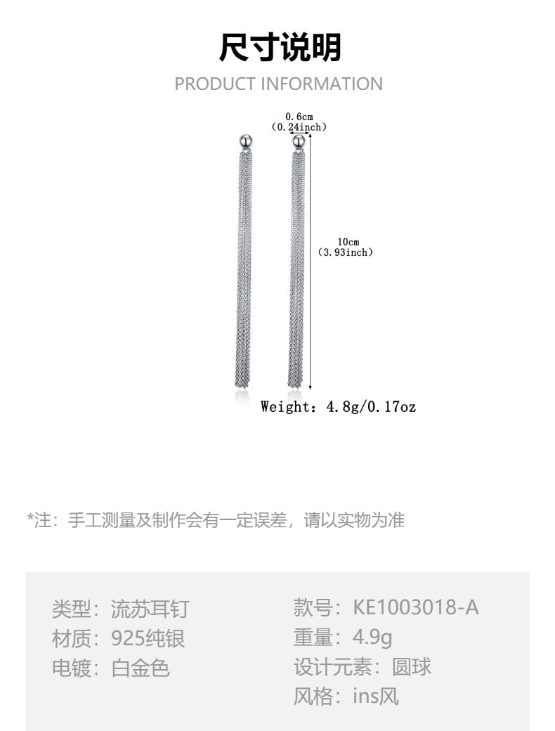 Long Fringe Earrings - 925 Sterling Silver Geometric Ball Drop Earrings