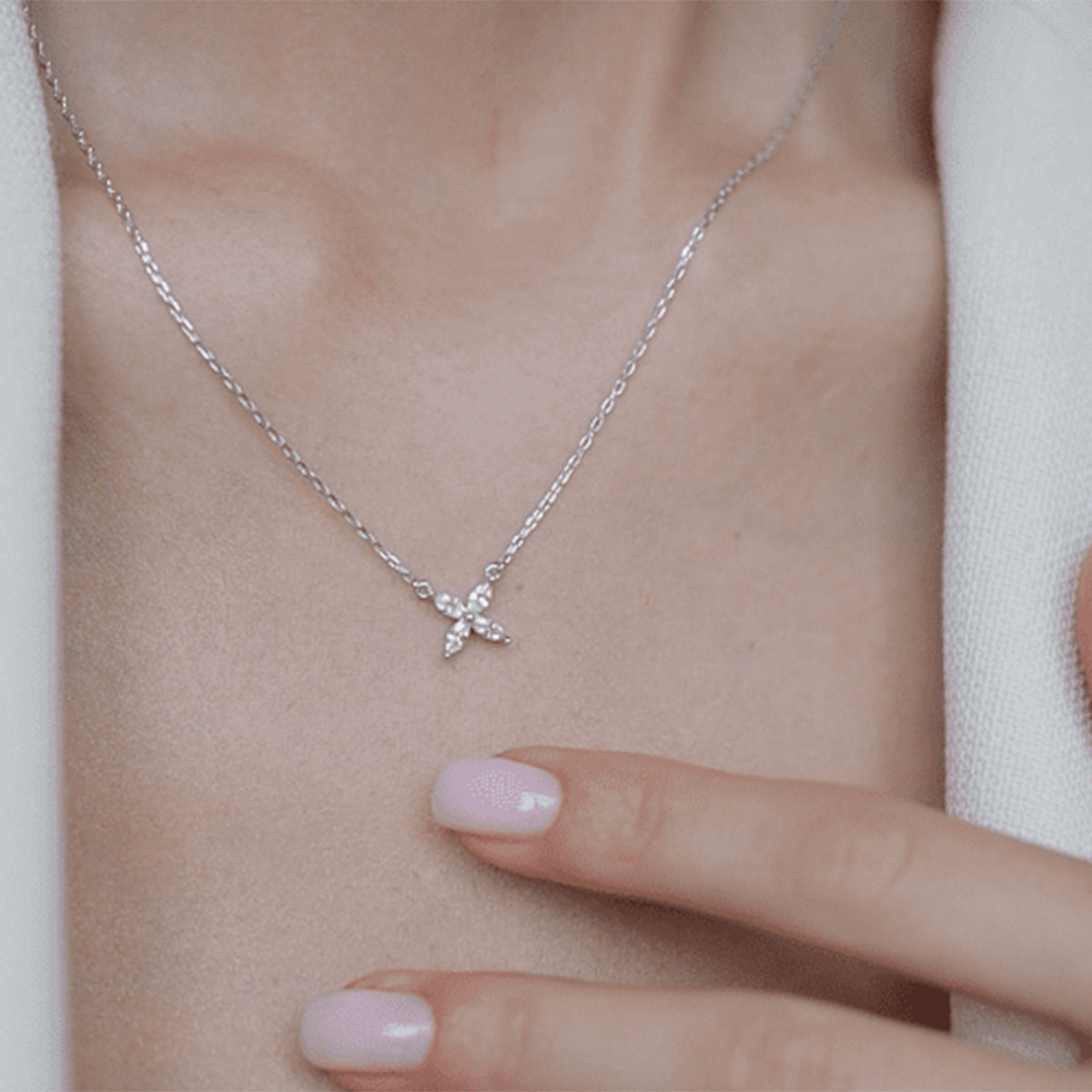 Butterfly Jewelry Set - 925 Silver Flower Pendant Necklace Bracelet