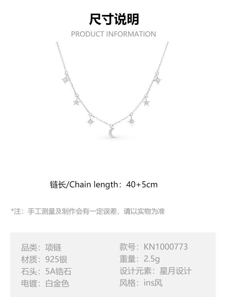 | Key Features | Key Selling Points | S925 Silver Plated, Plain/Diamond-Inlaid Moon-Star, 31-40cm, Minimalist Luxury, Euro-Commuter, Cross-Border Export |