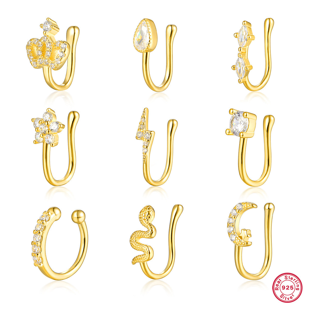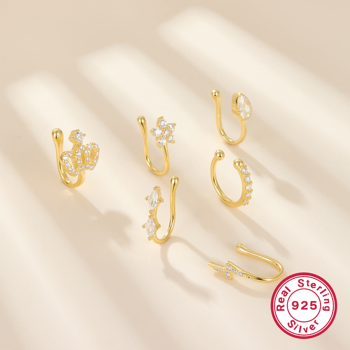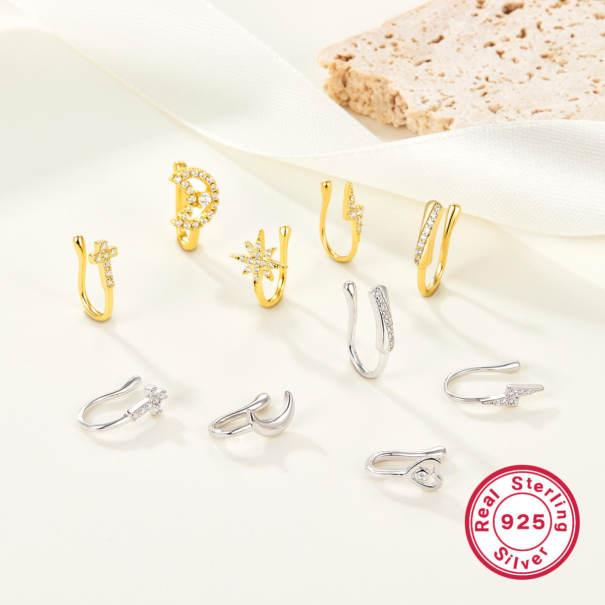 | Key Features | Key Selling Points | S925 Silver Zircon-Inlaid, U-Shaped Clip-On, Multi-Styles (Gold/Silver), Unisex Ins Euro, Sweet & Cool, Cross-Border Export |
