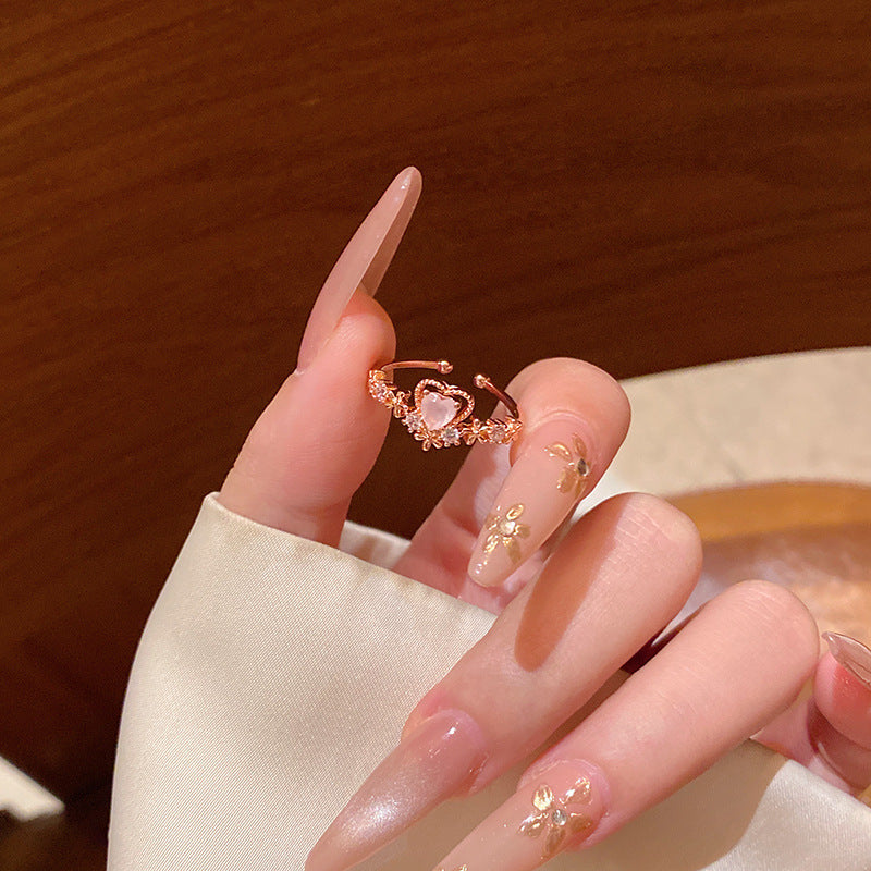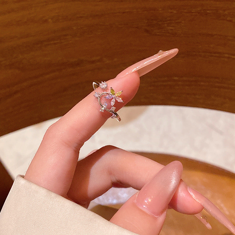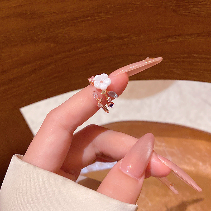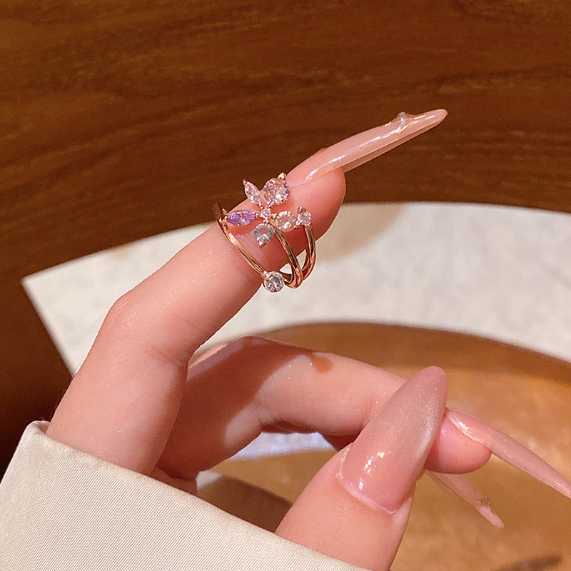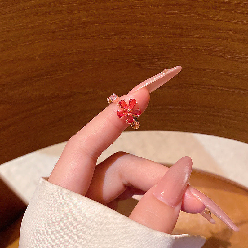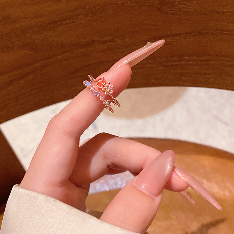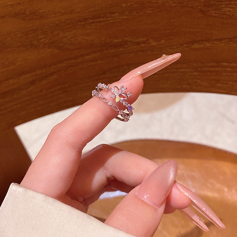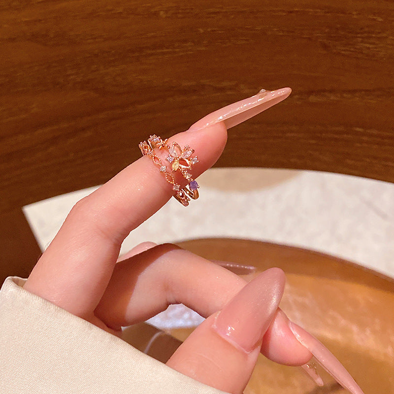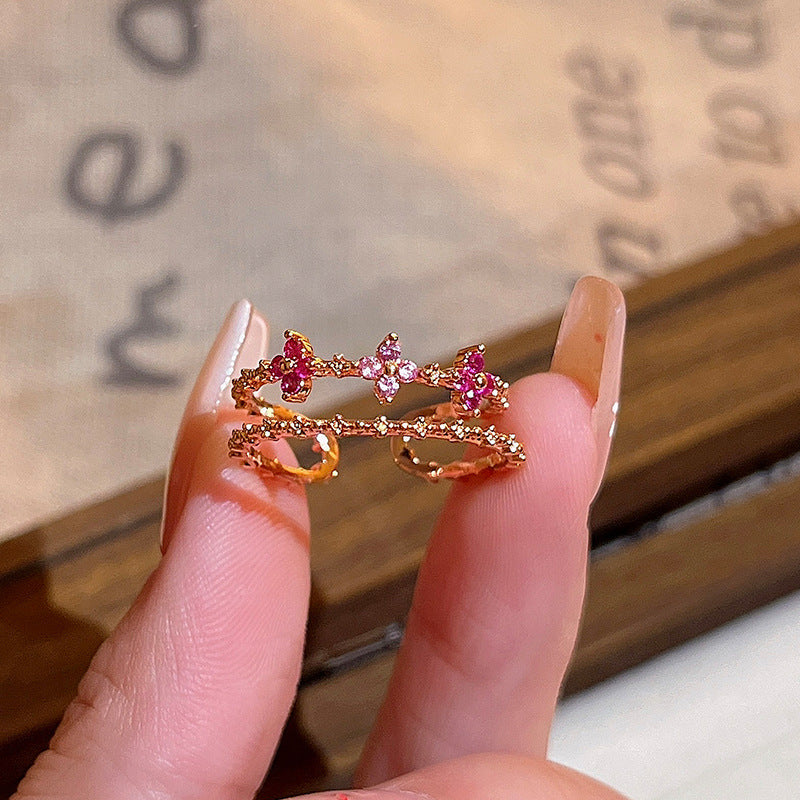 New exquisite zircon flower women's ring opening adjustable versatile love ring