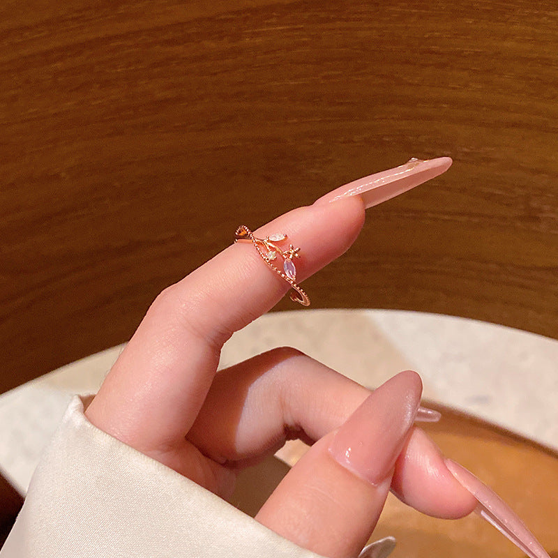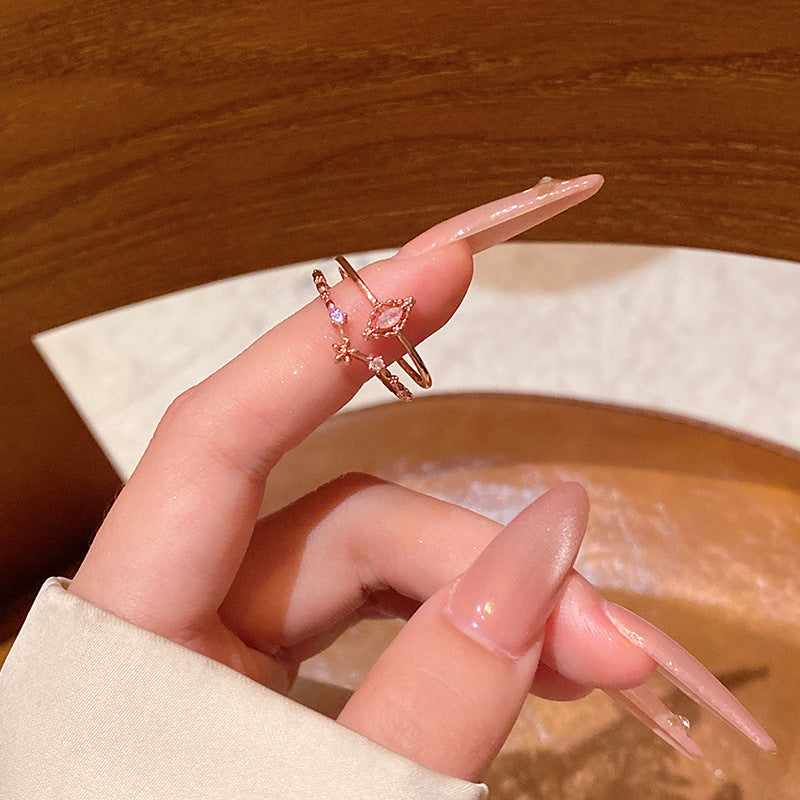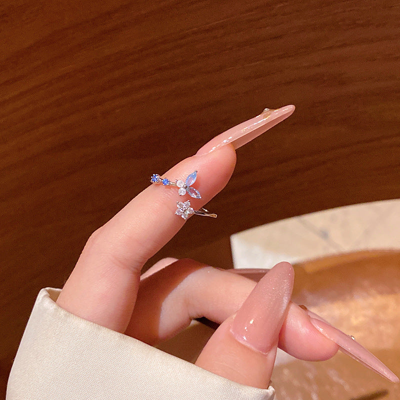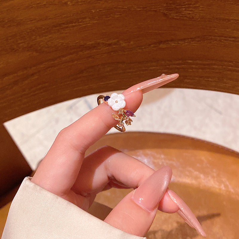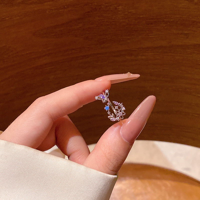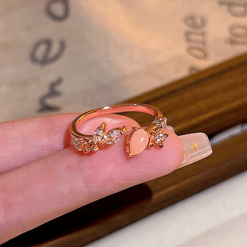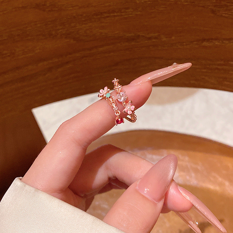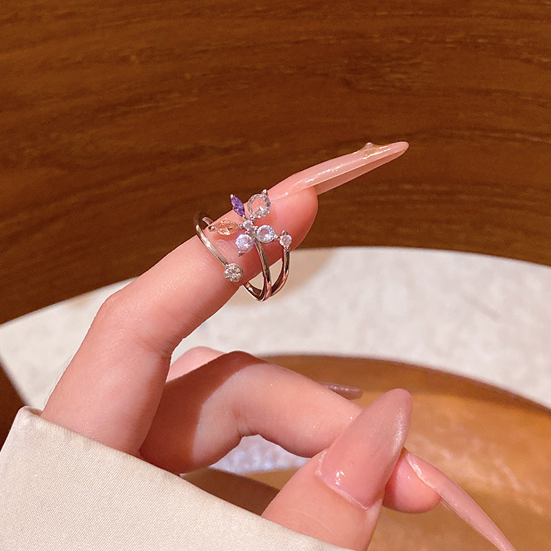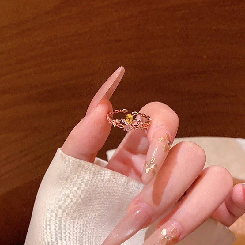 New exquisite zircon flower women's ring opening adjustable versatile love ring