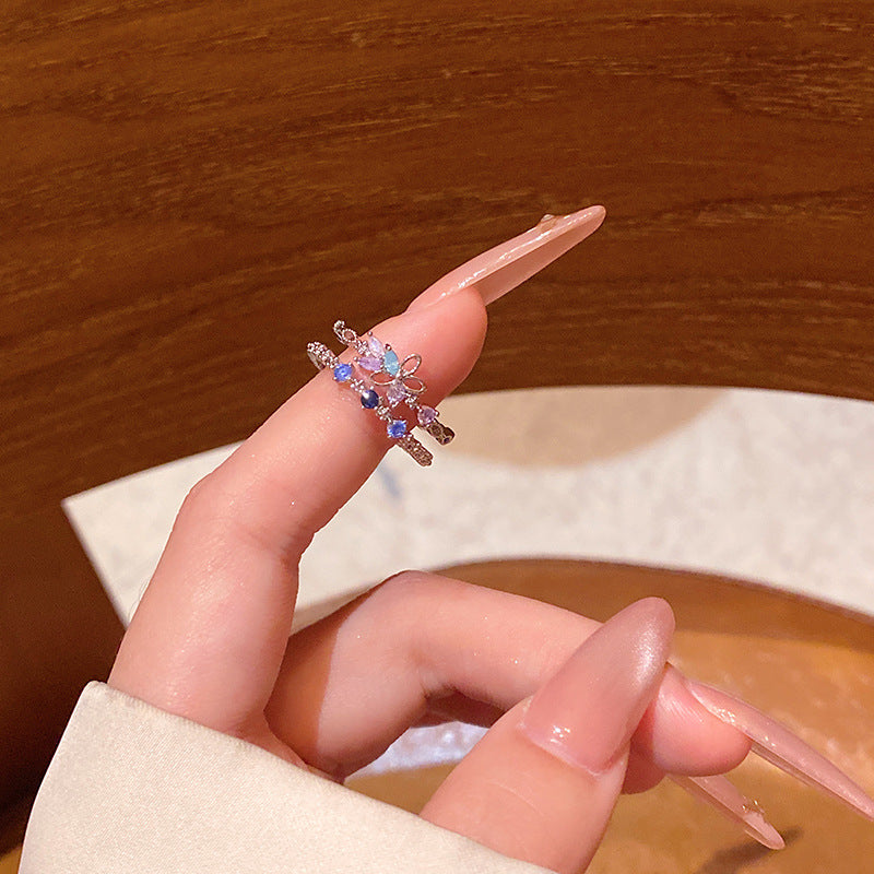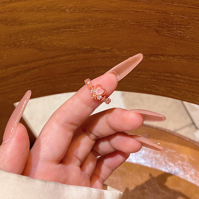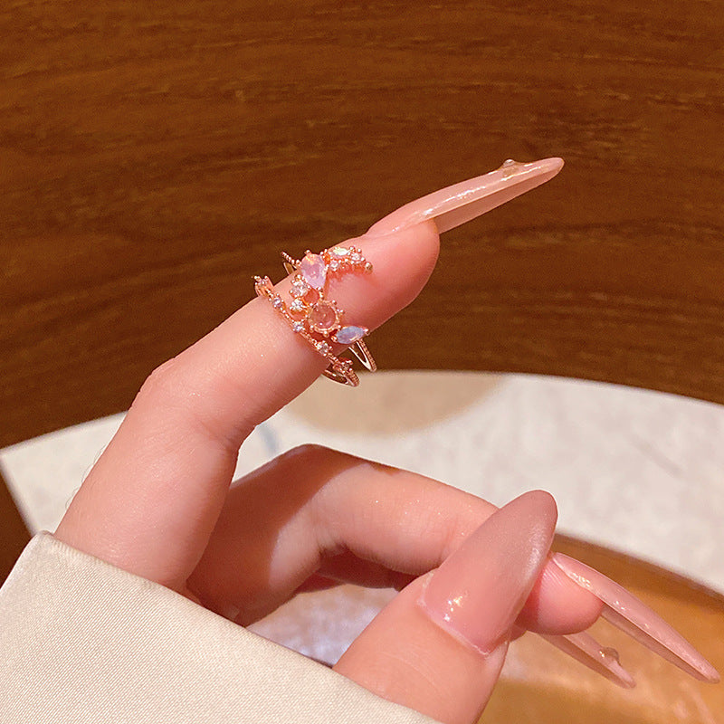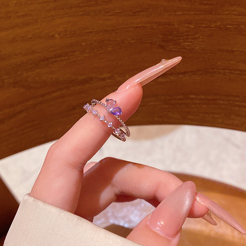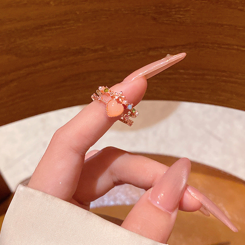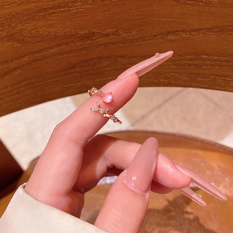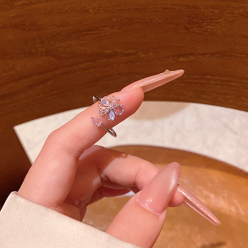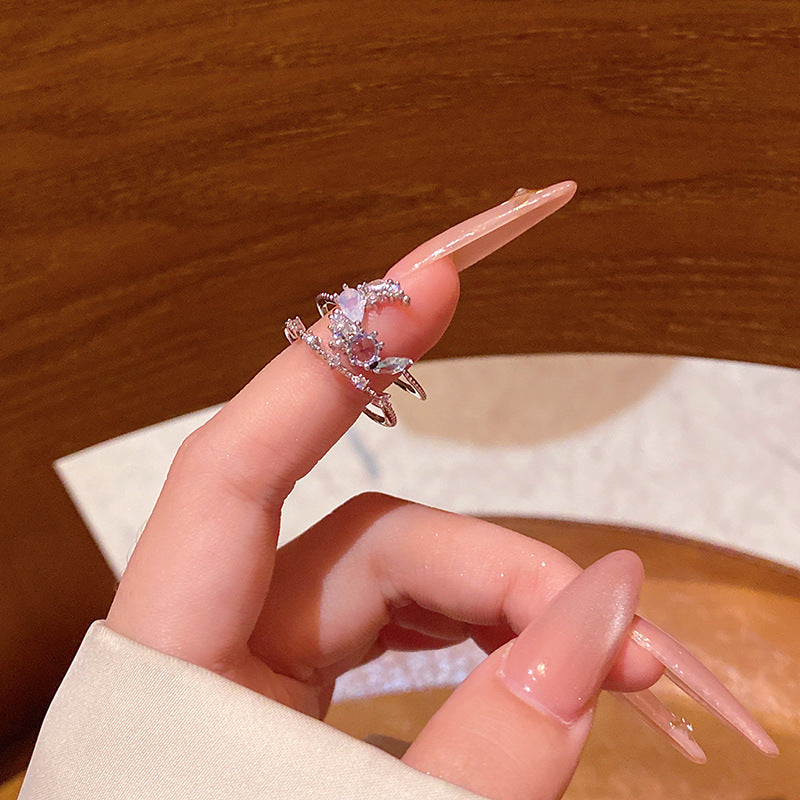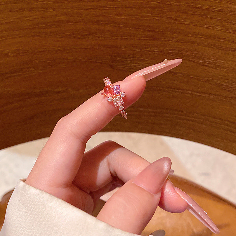 New exquisite zircon flower women's ring opening adjustable versatile love ring