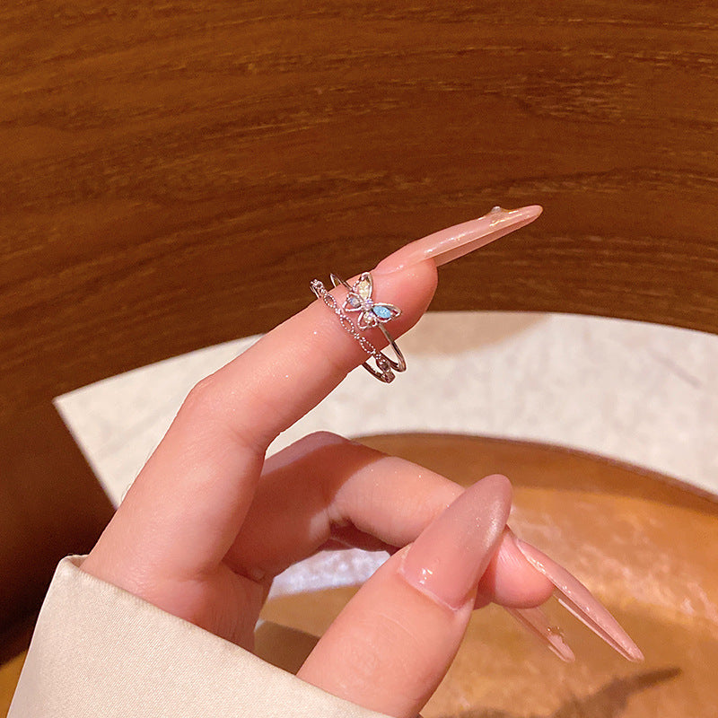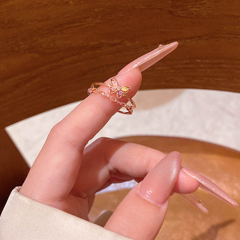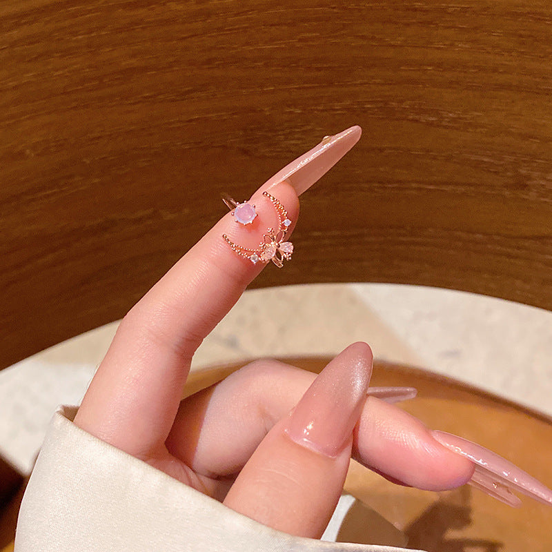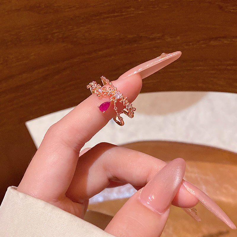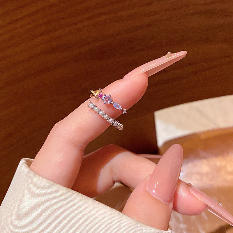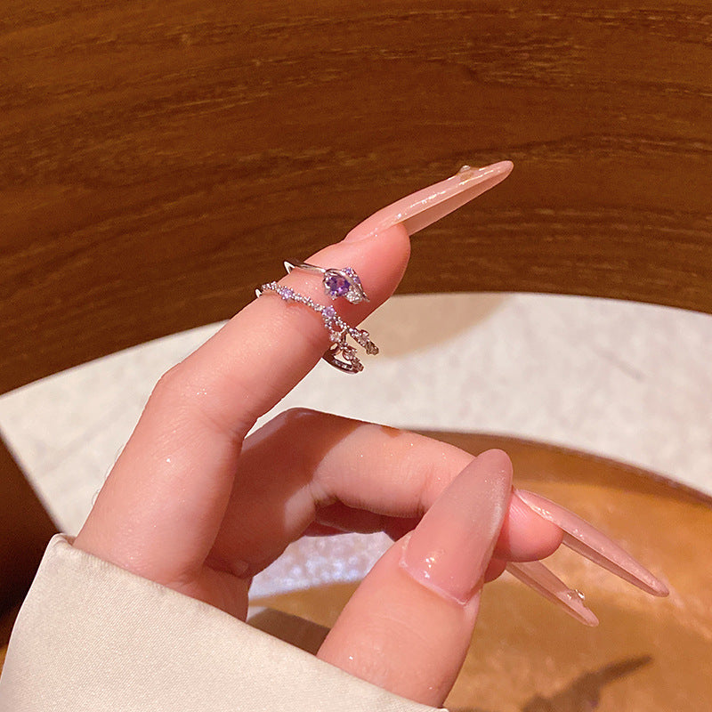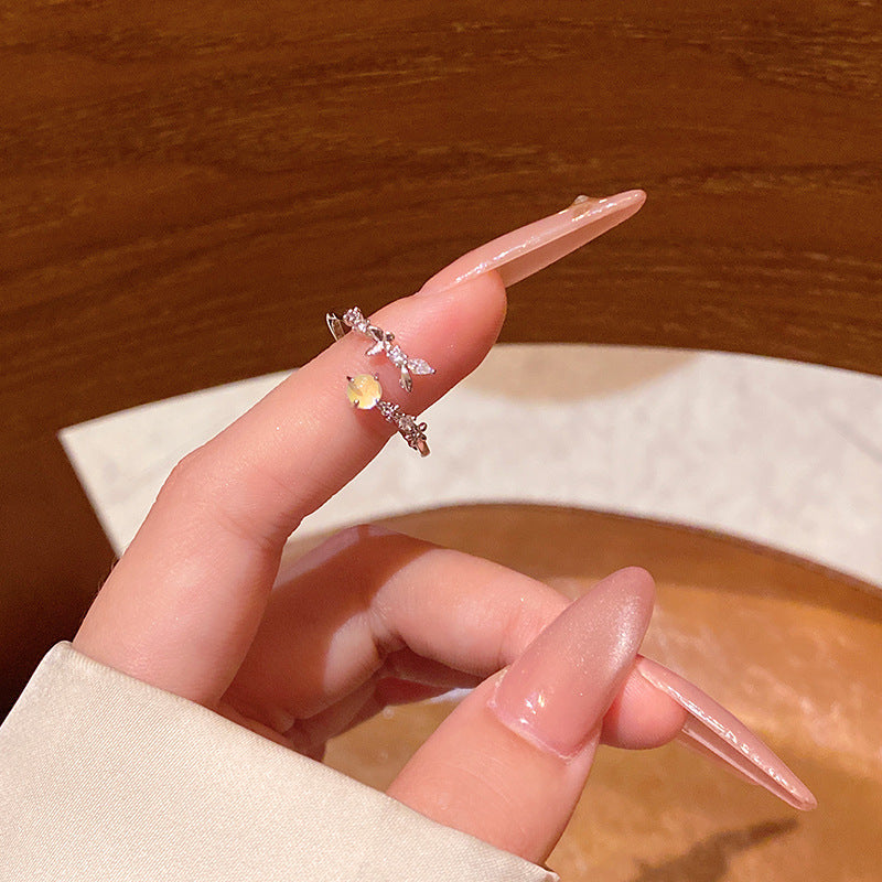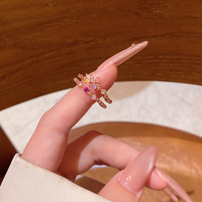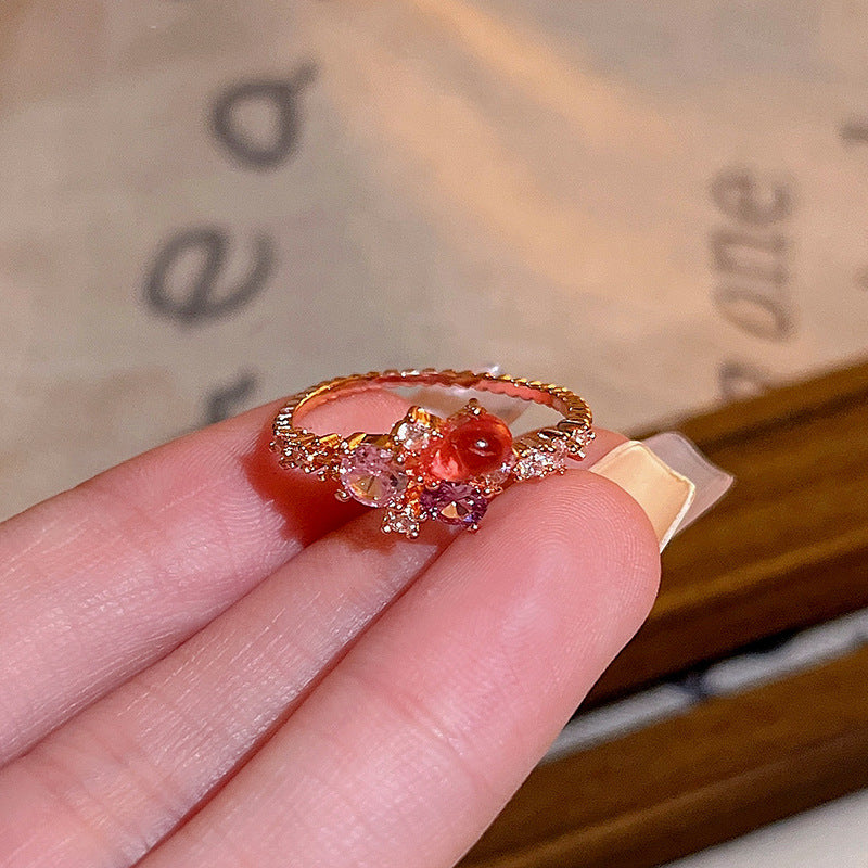 New exquisite zircon flower women's ring opening adjustable versatile love ring