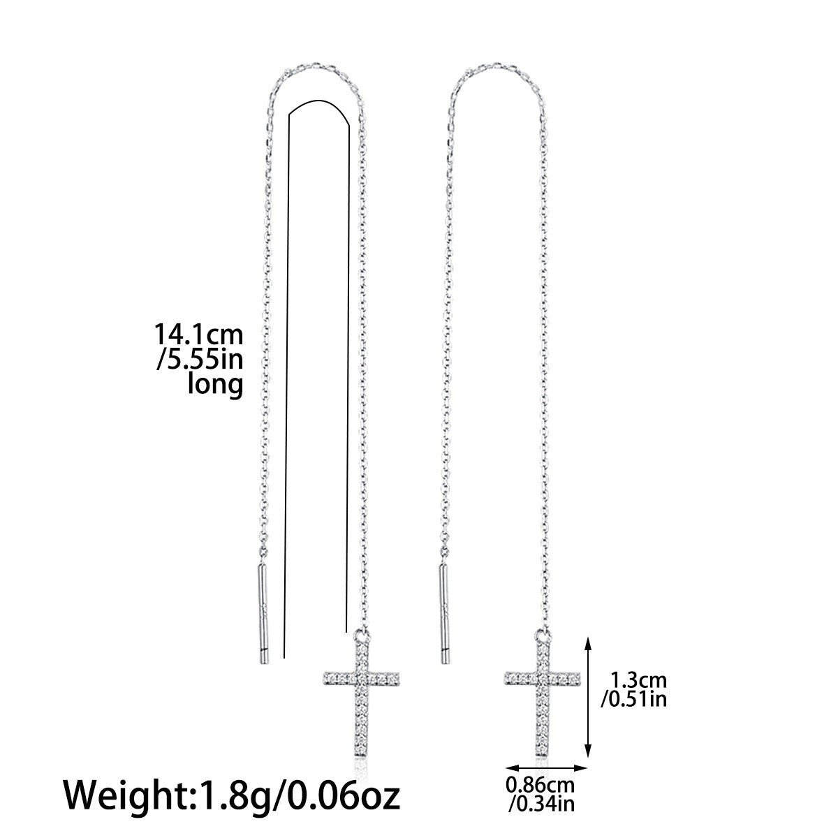 Cross Ear Threads - S925 Silver Micro Zircon Long Drop European Jewelry