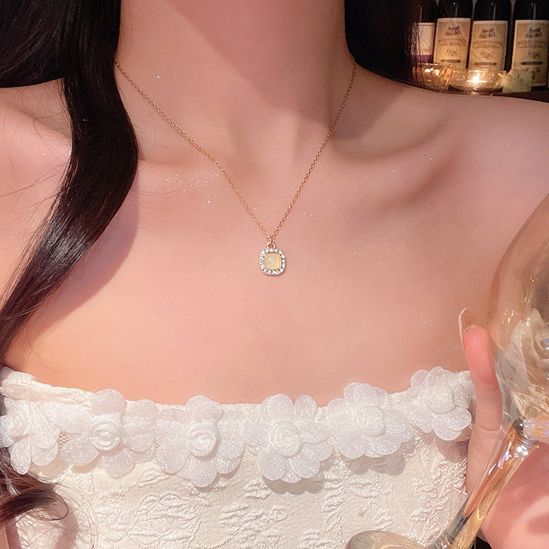 Women's series zircon imitation pearl titanium steel alloy necklace hot sale wholesale